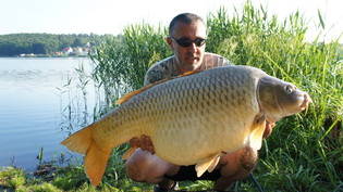 A doua zi a mai adus inca doi crapi 20+ pentru Sorin de 21,5 kg si 23kg eu reusind sa capturez numai crapi intre 10 si 15kg , scorul fiind de 4-1 pentru el , eu fiind totusi multumit ca mi-am doborit recordul personal . Miercuri dimineata am fost trezit de Cerbu care imi solicita ajutorul din apa fiind in drill cu inca un crap care s-a dovedit a fi de 20,5kg si in timp ce vroiam sa facem poze, pleaca alta lanseta de pe rodpodul lui , si acest crap sarit de 20, mai exact 23,5 ...incredibil , ziua deabea incepuse. Reusim cu greu sa ne revenim si nerabdatori sa vedem ce prezentari vom avea dupa nadirea de seara, cand reusesc si eu sa punctez cu inca un 20+ de 22kg. Joi si vineri au fost zile mai linistite si poate si automultumirea si-a spus cuvantul nereusind sa mai capturam crapi mai mari de 20kg pana sambata seara cand Sorin incheie seria crapilor cu un crap de 21,7 kg.