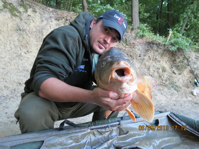 Revenind la partida in sine, odata ce am terminat cu balizatul si cu nadirea de apel am inceput pescuitul , cu doua lansete undeva la 100-120m si cu una intre 60-80m. In prima zi am avut o singura prezenta care a trecut pragul de 10kg, dar cu care am reusit sa imi dobor recordul anterior , o oglinda superba de 18kg care a preferat varianta picanta. Dupa o prima zi in care am avut o singura prezenta notabila am decis sa condimentez si nada cu care nadeam nu numai boiliesurile folosite la carlig si a doua zi a fost mult mai productiva cu 5 crapi sariti de 10 kg , dintre care doi 15+ si parca fratele geaman al celui din prima zi , inca un crap oglinda putin sarit de 18kg.Poate si unpic relaxat avand in vedere ca am reusit sa imi dobor de doua ori recordul anterior a treia zi mi-a adus 5 bucati mai mari de 10kg dar cu o greutate de pana in 14kg, toti fiind capturati la boiliesurile picante si la cele doua lansete aflate din larg , cea de-a treia lanseta cu care am incercat zone mai apropiate nu mi-a oferit numai crapi pana in 5kg si platica.