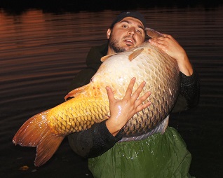 Continuam sa intretinem patul comun de nada si nu trece mai mult de o ora si Sorin are o prezentare pe lanseta care era pozitionata in partea lui de pat, semn ca pestii incep sa vina in zona. Mai optimist ca niciodata astept o trasatura si la mine la lansete, iar la putin timp aceasta vine cu un run de toata frumusetea la lanseta de pe patul de nada. Drill-ul a fost destul de anevoios, emotiile fiind foarte mari, avand in vedere ca am scapat primul peste si simteam ca si acest exemplar este unul capital. De data aceasta reusesc sa-l pun in saltea, ochiometric era mai mare de 23 kg cat aveam recordul personal. Confirmarea a venit si din partea cantarului, 24,800 KG! In sfarsit mi-am doborat recordul de anul trecut! Mai prinsesem 5 crapi sariti de 20kg sezonul acesta, dar nu am reusit pana la acest peste sa imi dobor recordul personal. Entuziasmat intru si in apa pentru poze si il eliberez in siguranta, fiind grabit sa repozitionez lanseta si sa continuam naditul.